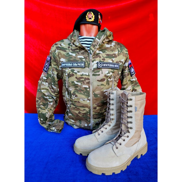 Комплектация 3 = 14800 руб : китель, штаны, значки, петлицы, оформление погон, шевроны премиум качества, аксельбант, берет, берцы, ремень с бляхой.
