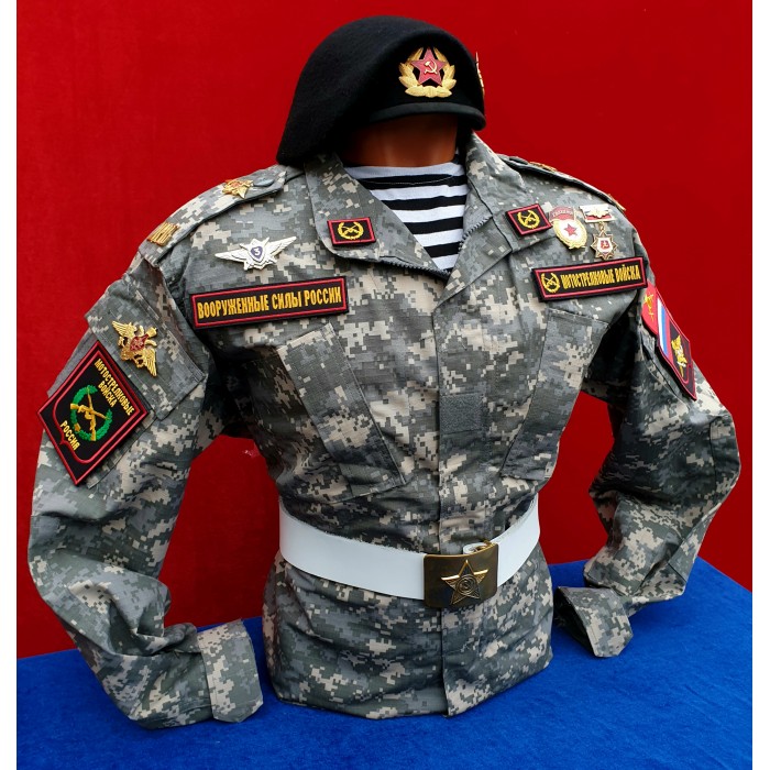 Комплектация 3 = 14800 руб : китель, штаны, значки, петлицы, оформление погон, шевроны премиум качества, берет, берцы, ремень с бляхой.